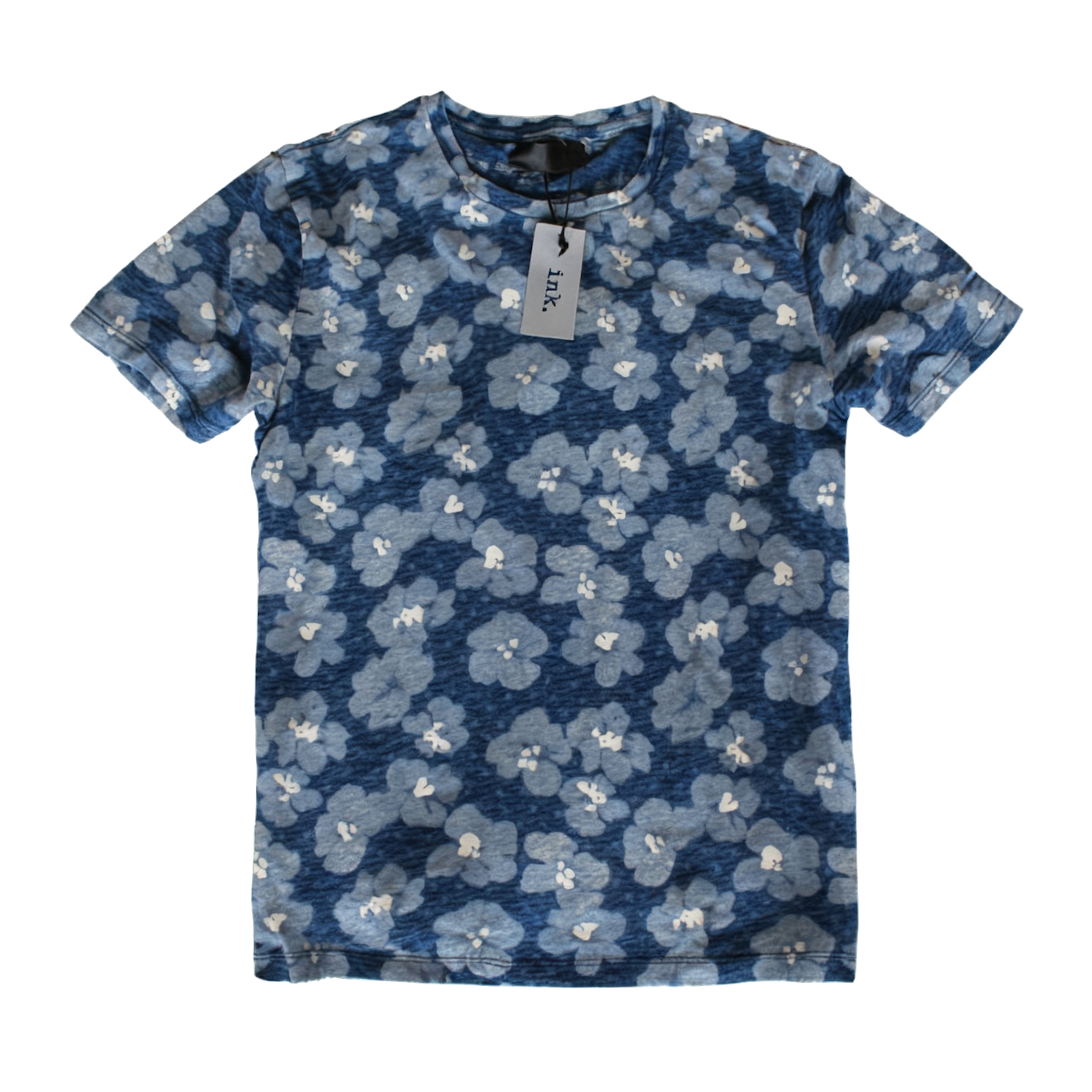 A perfect summer T shirt that pays homage to Warhol’s, flower print, referencing our interest in the artisan lifestyle. This slub cotton indigo T-shirt is sure to make a bold impression. Wear it solo as the key feature in your look, or under a denim shirt for a cool contrast.