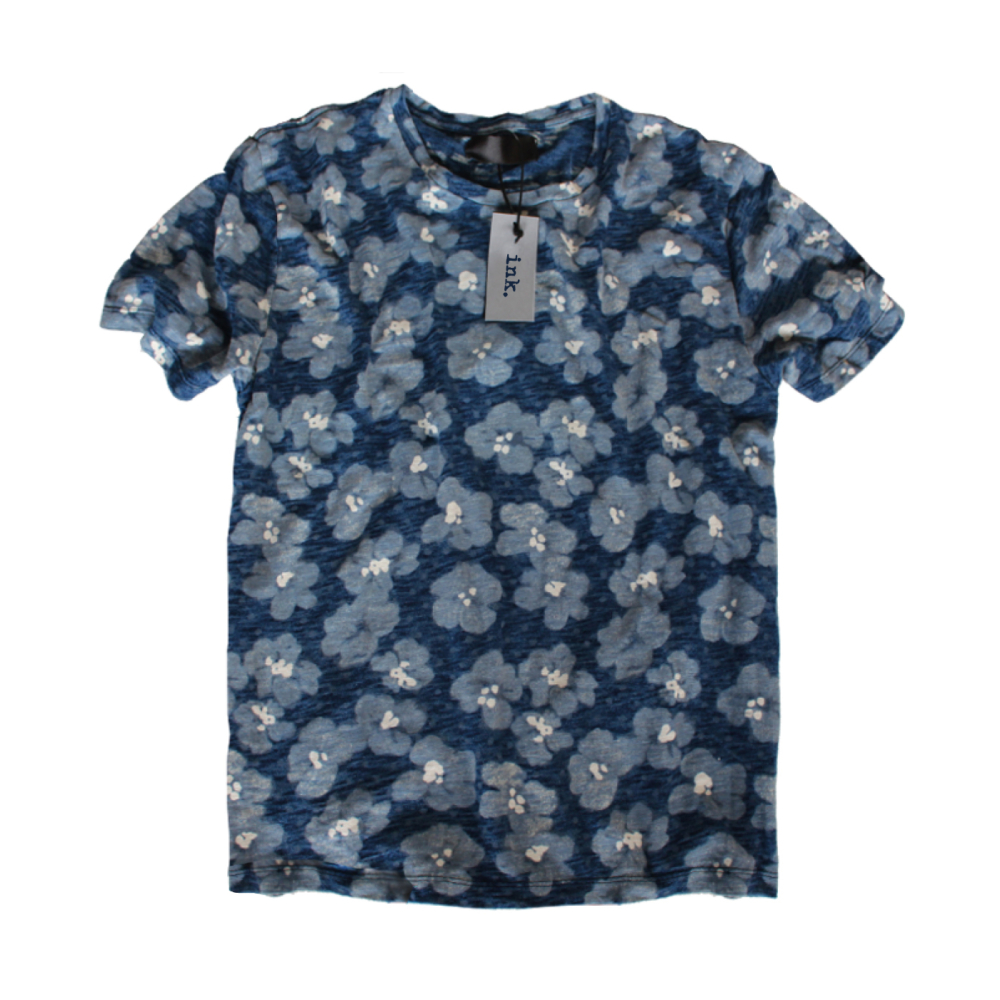 A perfect summer T shirt that pays homage to Warhol’s, flower print, referencing our interest in the artisan lifestyle. This slub cotton indigo T-shirt is sure to make a bold impression. Wear it solo as the key feature in your look, or under a denim shirt for a cool contrast.