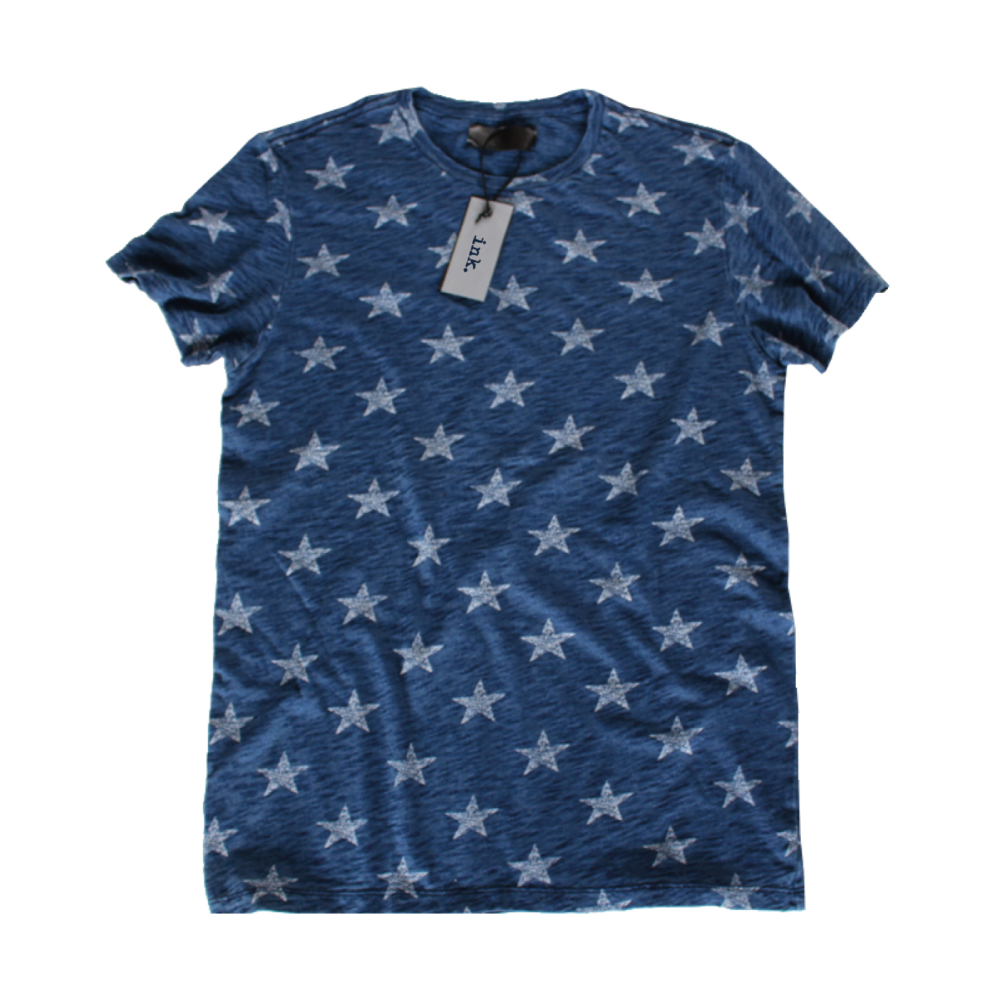 A perfect summer T shirt featuring discharged stars print on slub jersey cotton in true indigo. This T-shirt is sure to make a bold impression. Wear it solo as the key feature in your look, or under our light wight KLEIN indigo hoodie for a cool modernist style.